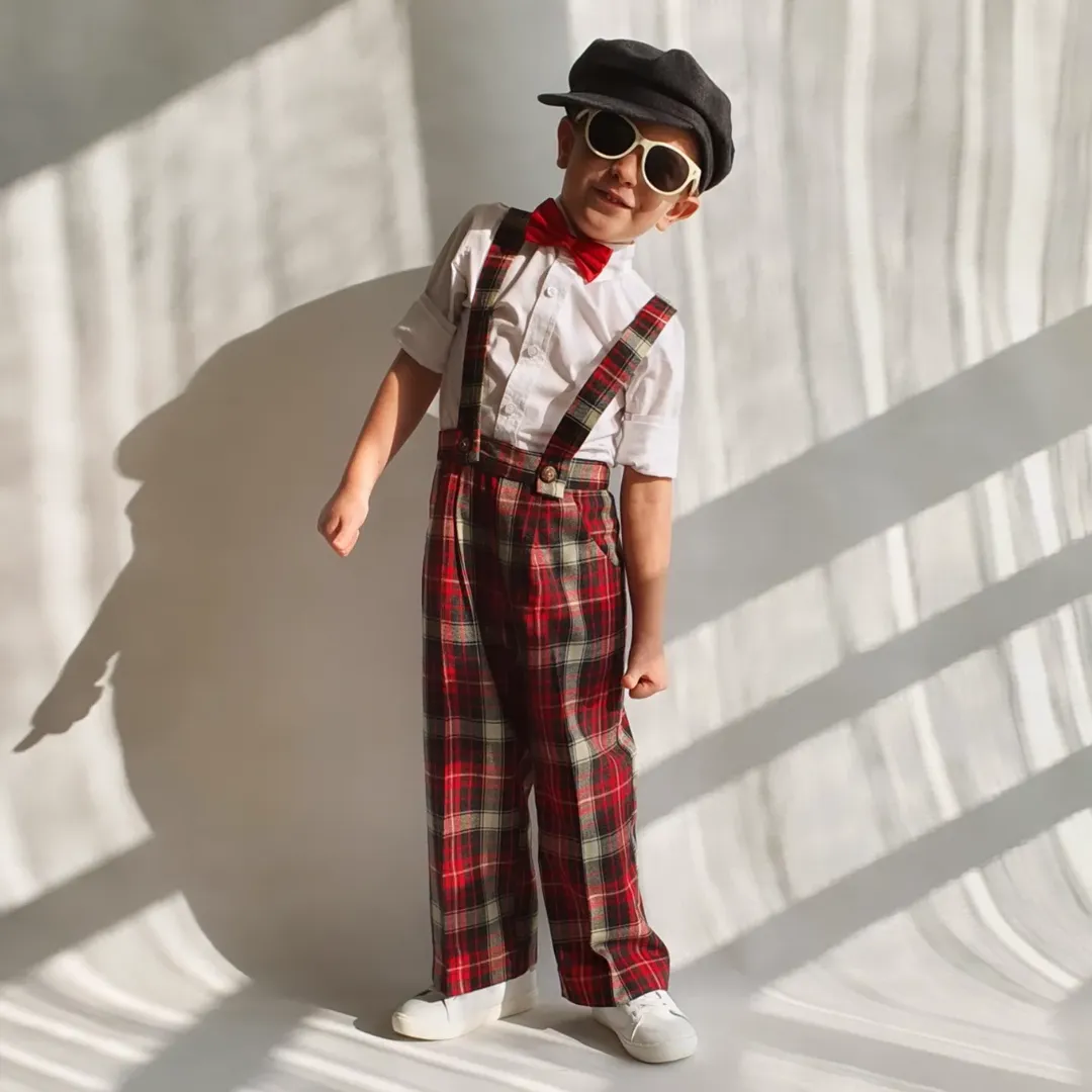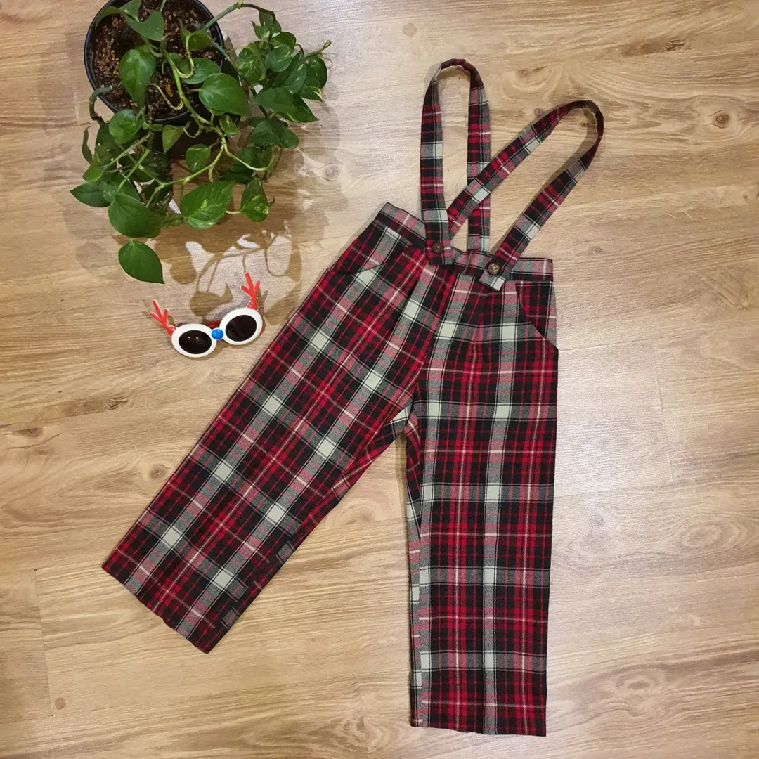 شلوار چهارخونه کشمیر ساسبند دار قابل سفارش از یک سال مناسب مهمانی های یلدا و کریسمس
